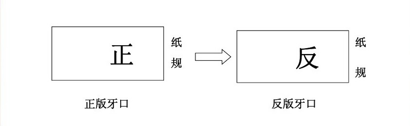 a、單面車(chē)印。排版上(shàng)下對稱,一正一反。正版(面)與反版(面)印色相同,印版共享.印完正版印色,上(shàng)下反紙(牙口與版尾反紙),不換版,繼續印反版印色。印版數(shù)量為(wèi)正版印色總和(hé)。